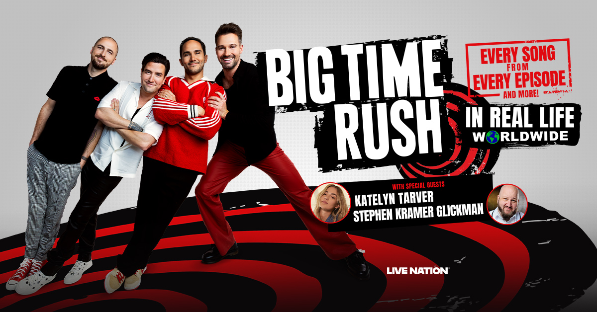 BIG TIME RUSH IN REAL LIFE WORLDWIDE will give fans exactly what they’ve long asked for – the band will play every song from every episode of their hit Nickelodeon show, many of which, have never been played live. Rushers will finally get to revisit their favorite moments from the show, plus many more surprises. Katelyn Tarver and Stephen Kramer Glickman, also known as Jo and Gustavo on the show, will be joining the band as support on all tour dates, making for an epic reunion.