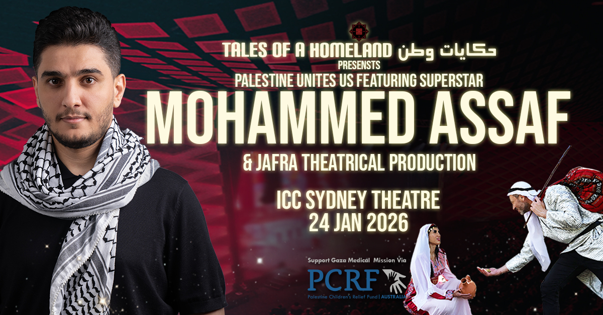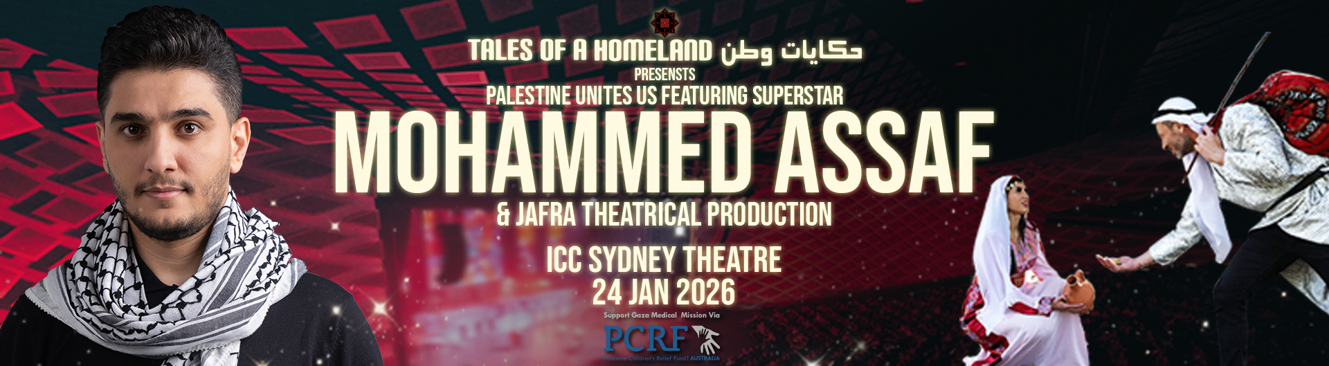 Experience a live concert by international superstar Mohammad Assaf, whose voice has carried the dreams and hopes of a nation. The event also features the debut stage production Jafra—a moving theatrical journey of love, defiance, and the unbreakable Palestinian spirit.